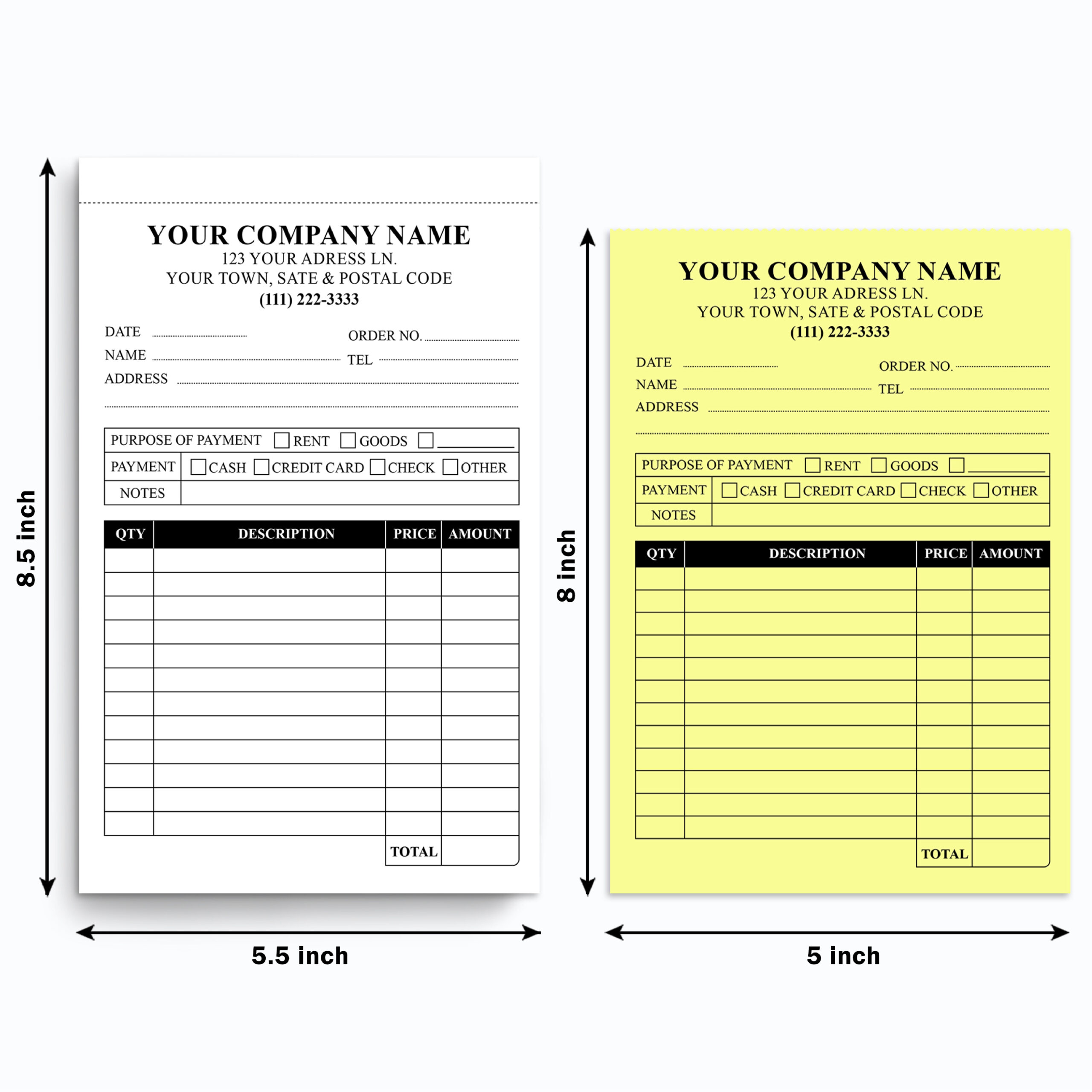 Carbonless NCR Book – 8.5″ x 5.5″ & 8.5″ x 11″ (2-Part: White & Yellow) – Fully Customizable
